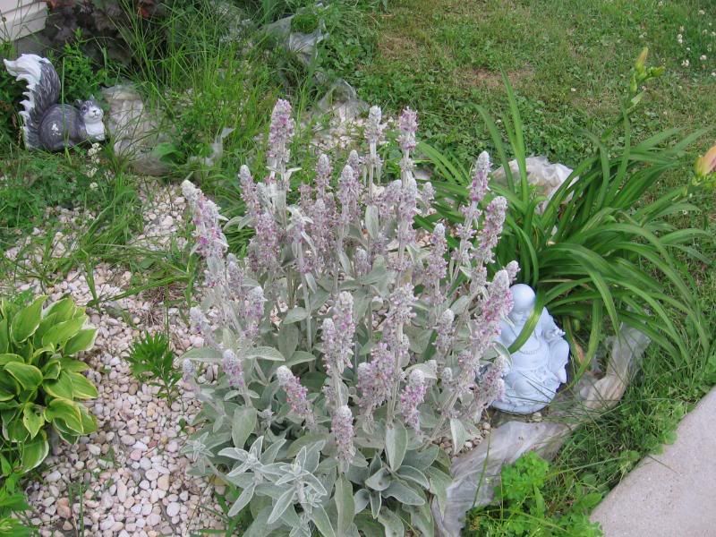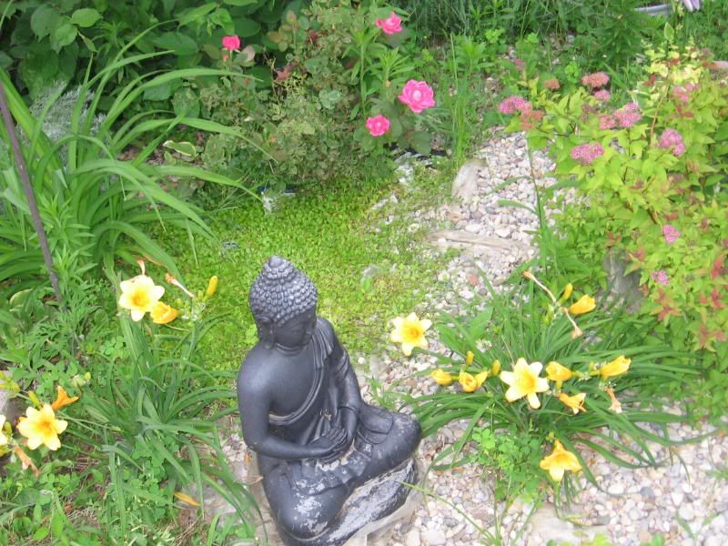 Buddha in Daylillies with a ground cover that is amazing. Must go back to Lowes for more