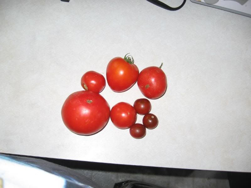 first harvest including celebrity, patio, solar fire and black cherry most of them became caprese salad tonight