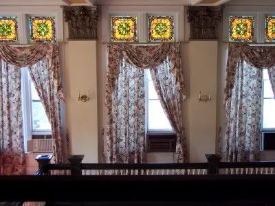 Out of desperation we grab some free ads from the Foodland and after dinner page through them and circle some to call in the morning. We return to the Lowe Hotel, which is right across the street from the Mothman statue. This has been a hotel continuously since 1901 and it’s still quite pretty though the carpet obviously hasn’t been changed since 1901 and neither has the electricity. In fact, I’m not sure HOW it didn’t burn down with a tv and a window a/c and all the lamps plugged into one old knob and tube electrical outlet. The heavy wood doors have transoms on the top and there’s SILK wallpaper on the walls, it’s that old and at one time wealthy. The beds were the old metal frame kind and it had the lovely radiators in it. There's lots of stained glass and marble. They upgraded us to a suite since it was mostly empty in the place but they gave us the key only to the living room side door. Mom cannot get this place locked up. Finally she gives up and goes in to lock it from the inside and come out the suite door. She manages to lock herself IN and can’t get out even with the key so she comes back out the other side (I’m still laughing at her) and we just leave the damn thing unlocked when we go out. At this point Mom’s like, why don’t you just see if you can live here. I’m thinking you know…it’s cute and it’s giving me story ideas and how hard it is to live in the Hyperion Hotel. Mom looks up from Stargate and asks, “Doesn’t Angel live in an old hotel like this?” Yes Mom he does. I guess if it’s good enough for a fictional vampire it’s good enough for me.