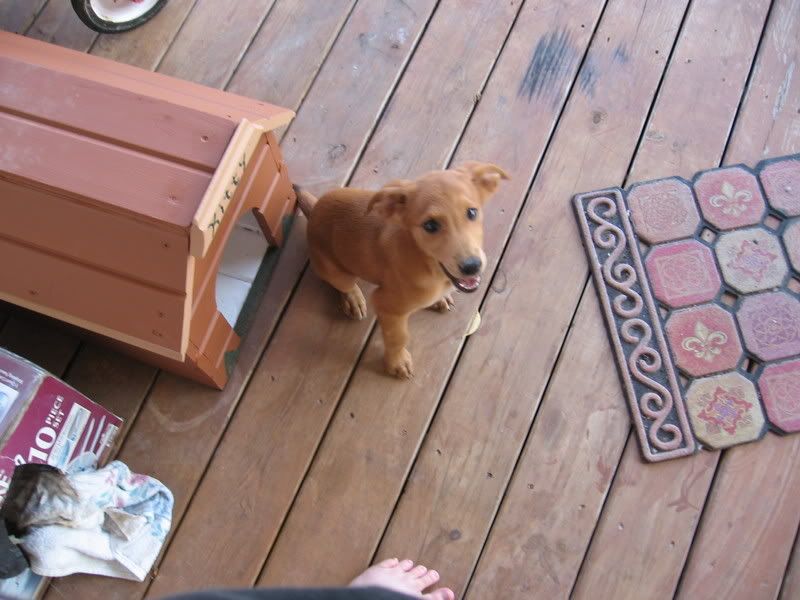 Queenie Poses This is the neighbor across the courtyard's terrier-thing. She's kinda homely. Ignore the box with the dirty towel. That's now in the garbage can since Roy has a wooden box my uncle made