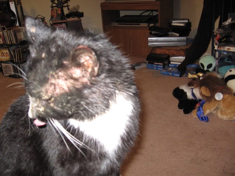 And like a cartoon character Roy is now SICK from being washed. His eye is swollen (keeping an eye on that. Hoping it's just his cold) and he is sneezing and snotting all over and wants ME to hold him. Um no.