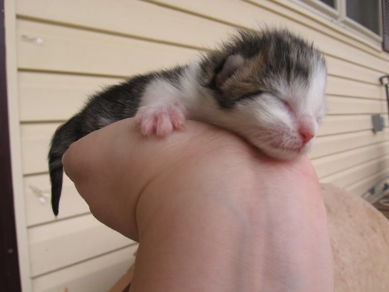 And now what you've all been waiting for, a pocket full of cuteness. (mom was on the phone with me going WHAT is that horrible squeaking? the kittens mom, I'm holding one. It's that loud in two days? Babies apparently are ALL lung no matter the species)