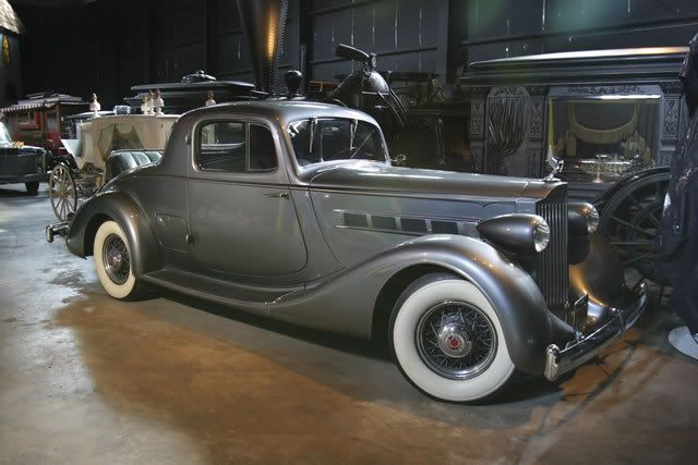 The curators beckoned them on and lead them deeper in, stopping in one room to point out the cars that had moved and in another crammed with memorabilia, including a glass-sided horse drawn hearse .